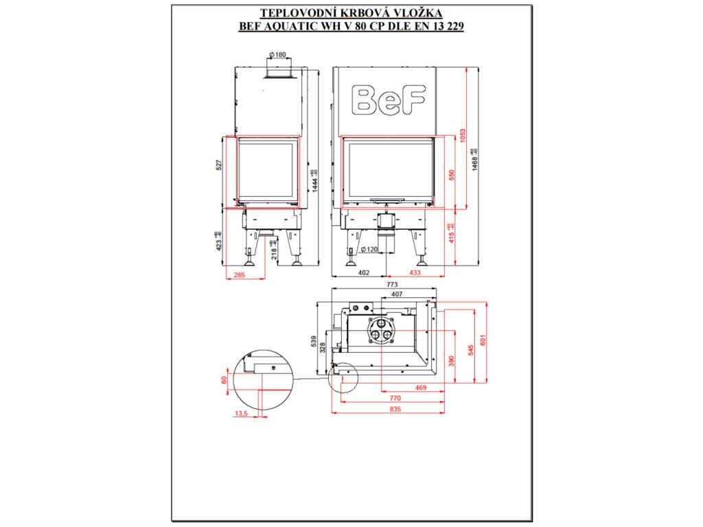 Bef Home - Teplovodná krbová vložka - Bef Aquatic WH V 80 CP - 9-16 kW