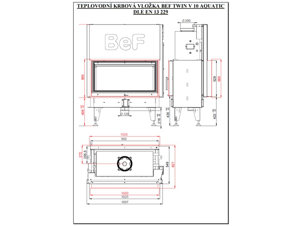 Bef Home - Teplovodná krbová vložka - Bef Twin V 10 Aquatic II - 16-24 kW