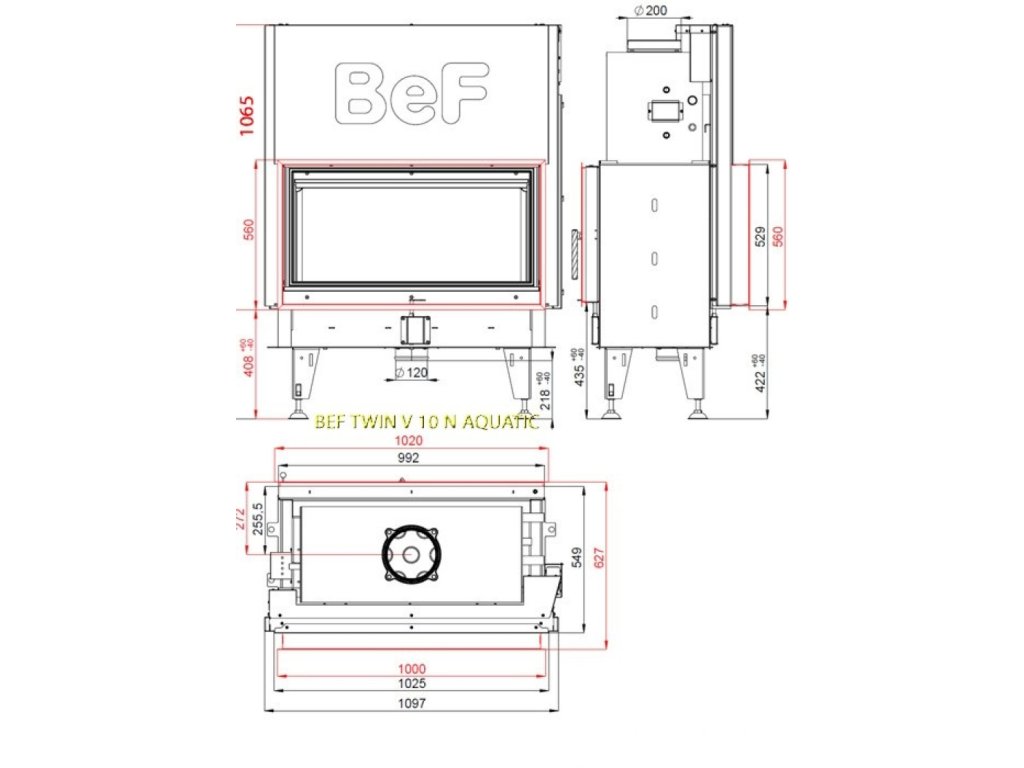 Bef Home - Teplovodná krbová vložka - Bef Twin V 10 N Aquatic II - 16-24 kW