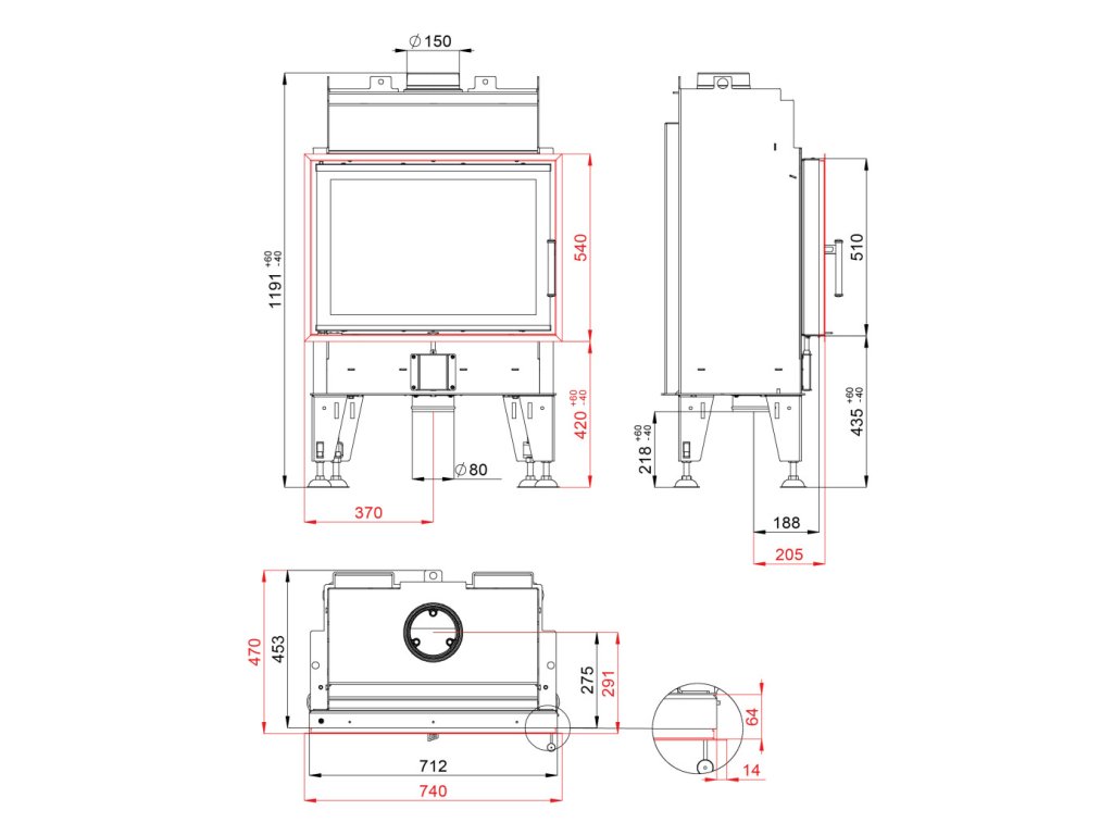 - Vlastný rozmer ohniska: 520x295 mm