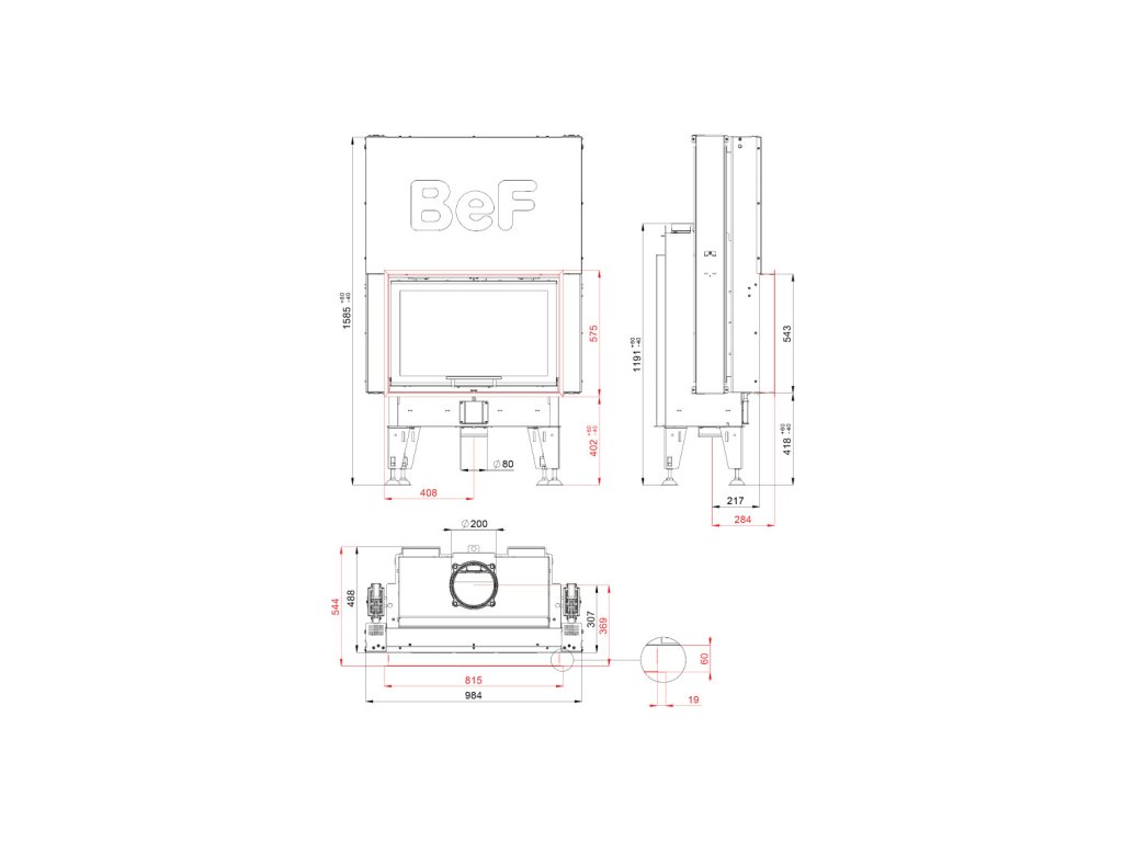 Bef Home - Teplovzdušná krbová vložka - Bef Therm Passive V 8 - 7-10 kW