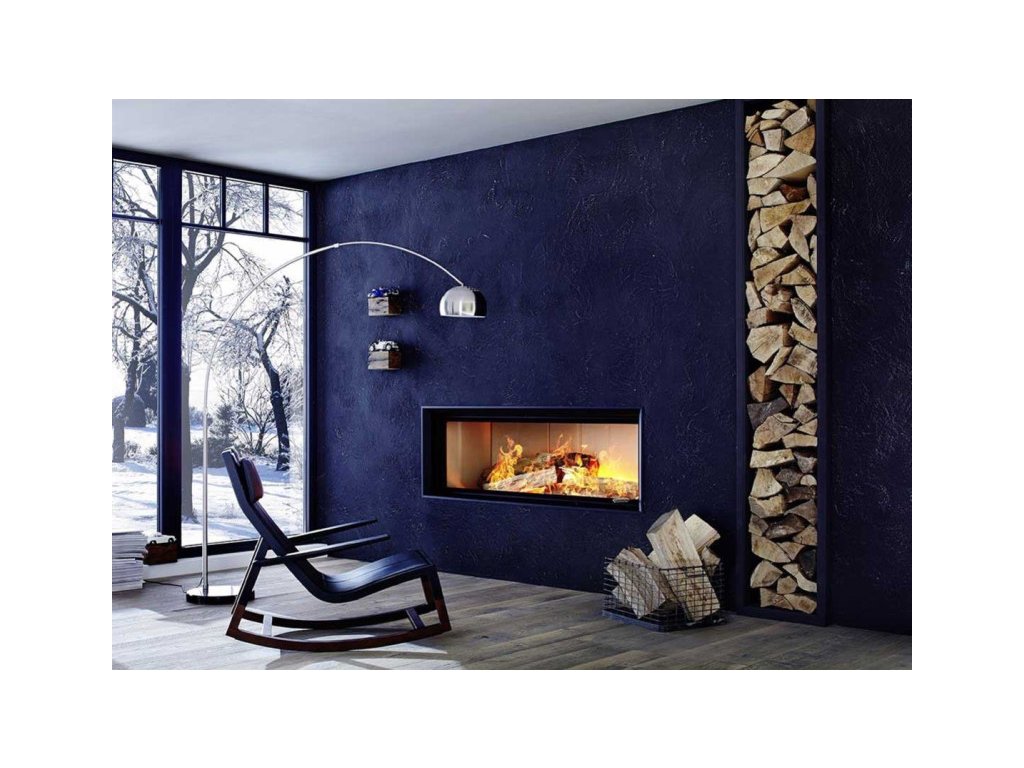 Brunner - teplovzdušná krbová vložka - AK horevýsuvné dvierka, 53/166 , rovné sklo, čierne, jednoduché presklenie