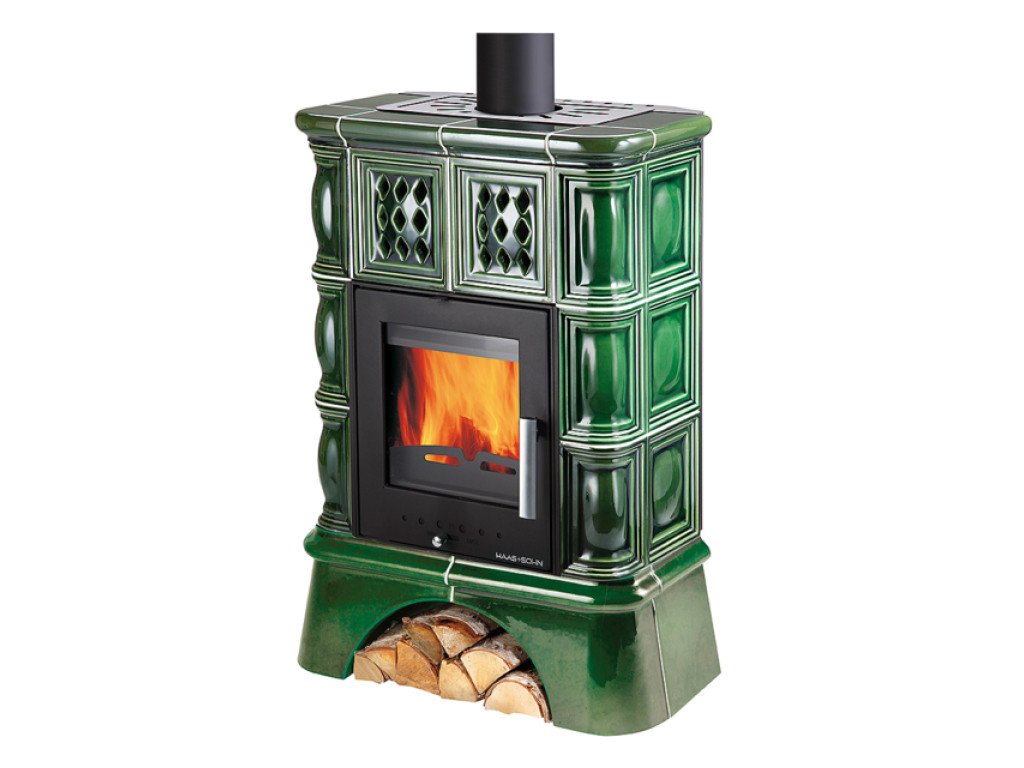 Haas+Sohn - Teplovodné krbové kachle - TREVISO II, zelená s výmenníkom, kachľový sokel - 5 kW