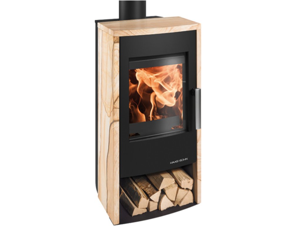 Haas+Sohn - Teplovzdušné krbové kachle - AZUL, čierna/woodstone prestige - 3.0 - 6.4 kW
