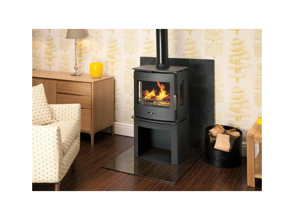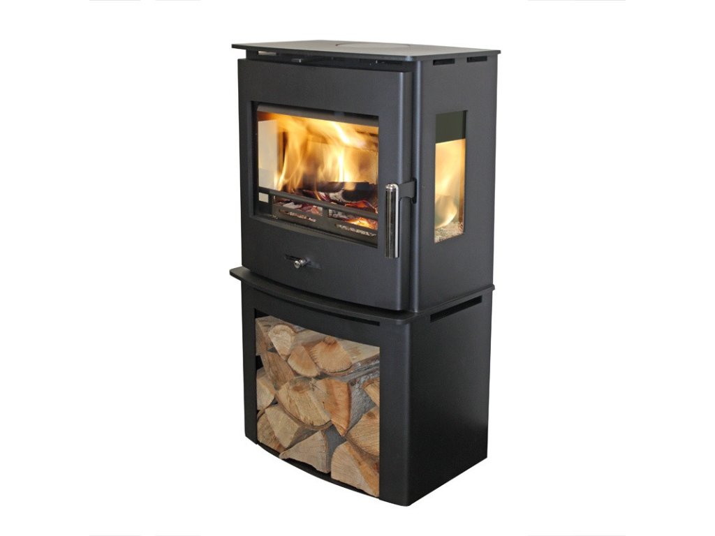 HEDE - Teplovzdušné krbové kachle - HEDE 4D Panorama, s drevníkom - 5 kW