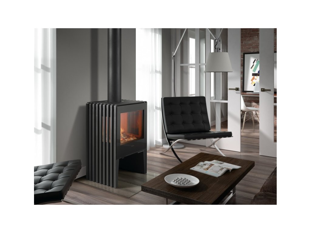 - Pohľad na blikajúce plamene si môžete vychutnať z každej strany miestnosti - kachle sú na bočných stranách presklené. Záujme aj liatinová rebrovaná konštrukcia, ktorá robí kachle výnimočnými a nemali by chýbať v žiadnej súčasnej domácnosti.