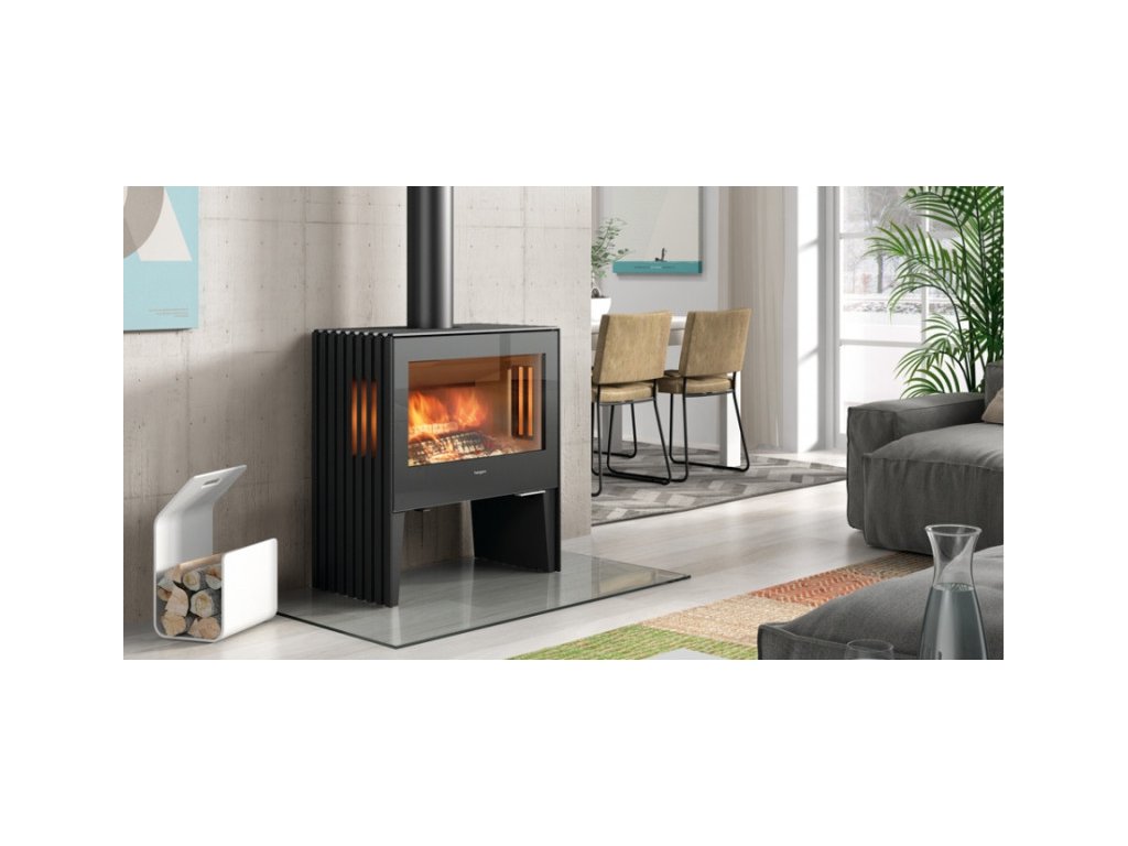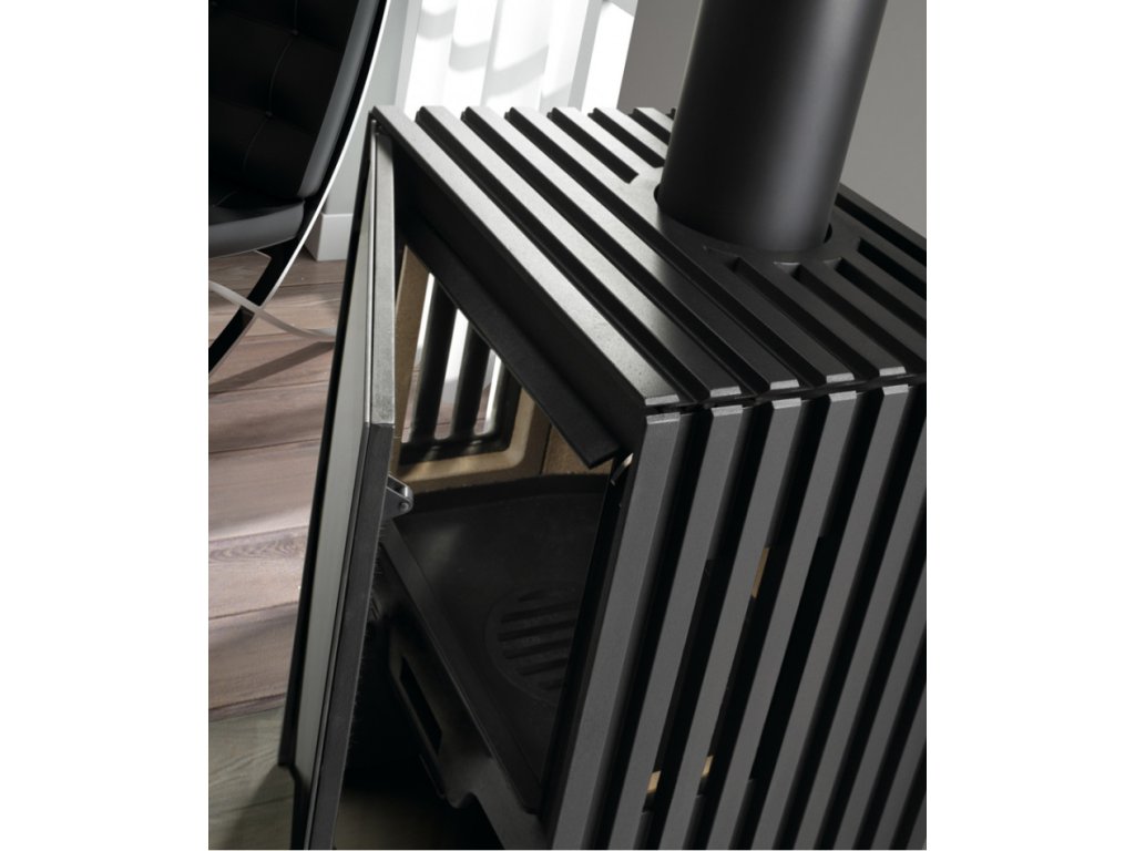 - Pohľad na blikajúce plamene si môžete vychutnať z každej strany miestnosti - kachle sú na bočných stranách presklené. Záujme aj liatinová rebrovaná konštrukcia, ktorá robí kachle výnimočnými a nemali by chýbať v žiadnej súčasnej domácnosti.