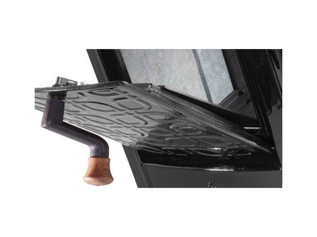 - Regulácia sa uskutočňuje prostredníctvom jedinej klapky. Na prikladanie palivového dreva môžete použiť predné dvierka s bočným otváraním alebo bočné vyklápacie dvierka, vďaka ktorým kachle pohĺtia až 60 cm polená, zabraňujú vypadávaniu popola a úniku dymu.