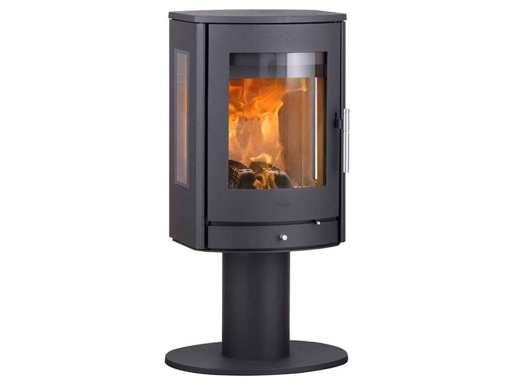 HETA - Teplovzdušné krbové kachle - Scan-Line 850M, na otočnej nohe, ploché boky, bočné presklenie - 5,5 kW
