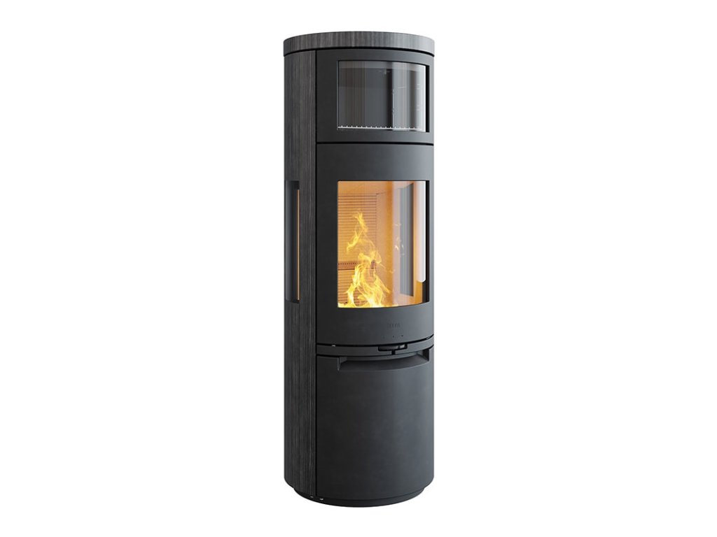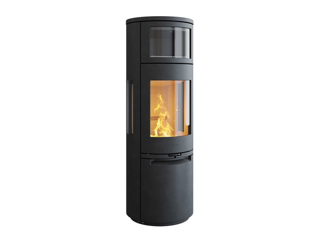 Veľké presklenie zvýrazňuje krásne a efektívne spaľovanie, ktoré možno ľahko regulovať pomocou ovládacieho kolieska prívodu vzduchu na prednej strane. Dvere sú vybavené automatickým uzatváraním, čo zvyšuje komfort užívania.