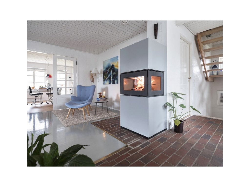 HETA - Teplovzdušné krbové kachle - Scan-Line Solid C, v akumulačnom betóne, 3 stranné presklenie - 8 kW