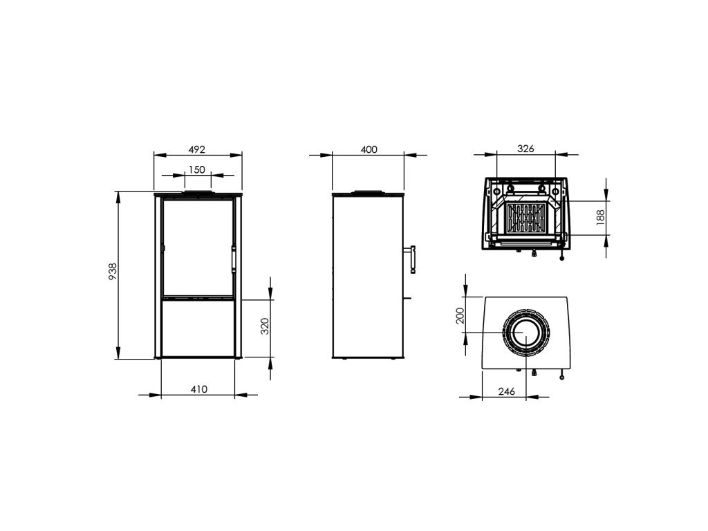 - 4 varianty montáže piecky (na nožičkách alebo s otvorom na drevo