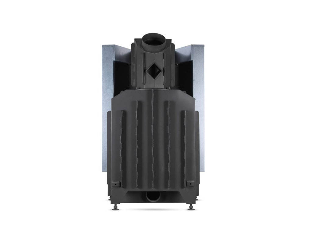 Hoxter - Teplovzdušná krbová vložka - KV HAKA 67/51h, horevýsuvné dvierka, oceľový výmenník 90°, čierne, jednoduché presklenie - 12 kW