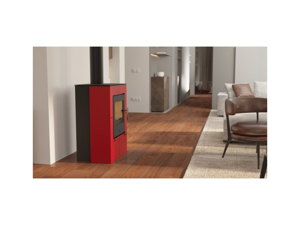 HS Flamingo HSF02-046 - Teplovzdušné krbové kachle EVENES, červená - 9 kW