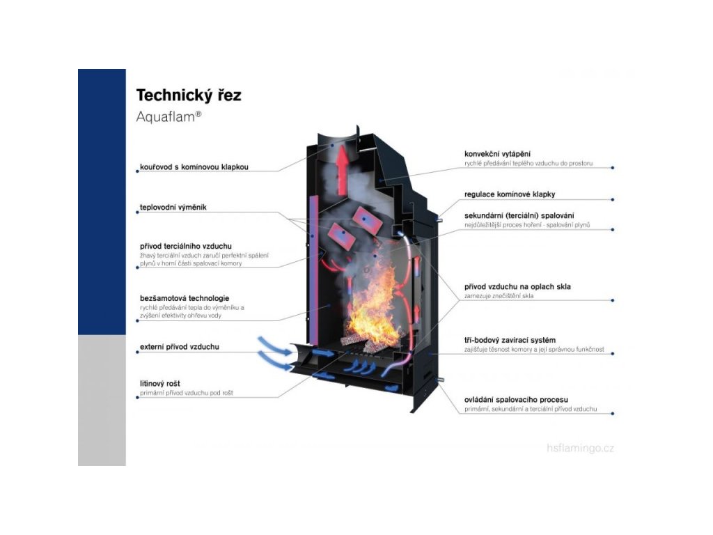 HS Flamingo HSF23-066 - Teplovodná krbová vložka AQUAFLAM Panorama s výmenníkom - 17 kW - základná regulácia