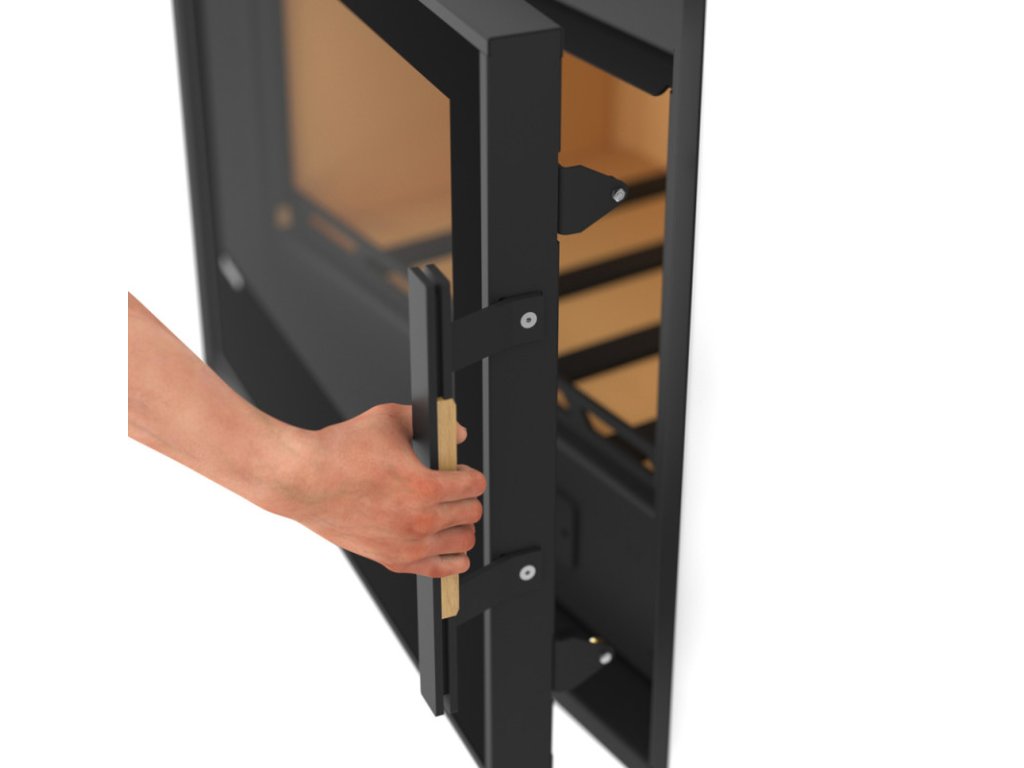 Otváranie u krbových vložiek Flamingo je veľmi jednoduché a bezpečné. Zvolili sme systém ako ho poznáte napríklad u chladničiek, kde stačí len zabrať a dvierka sú otvorené. Žiadne kľučky a riziko popálenia.