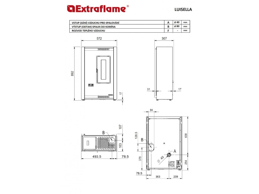 - Externý prívod vzduchu: 40 mm