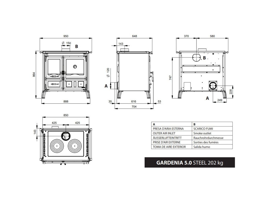 La Nordica - Teplovzdušný sporák na tuhé palivo - Gardenia.16 antracit - čierny 9,5,kW