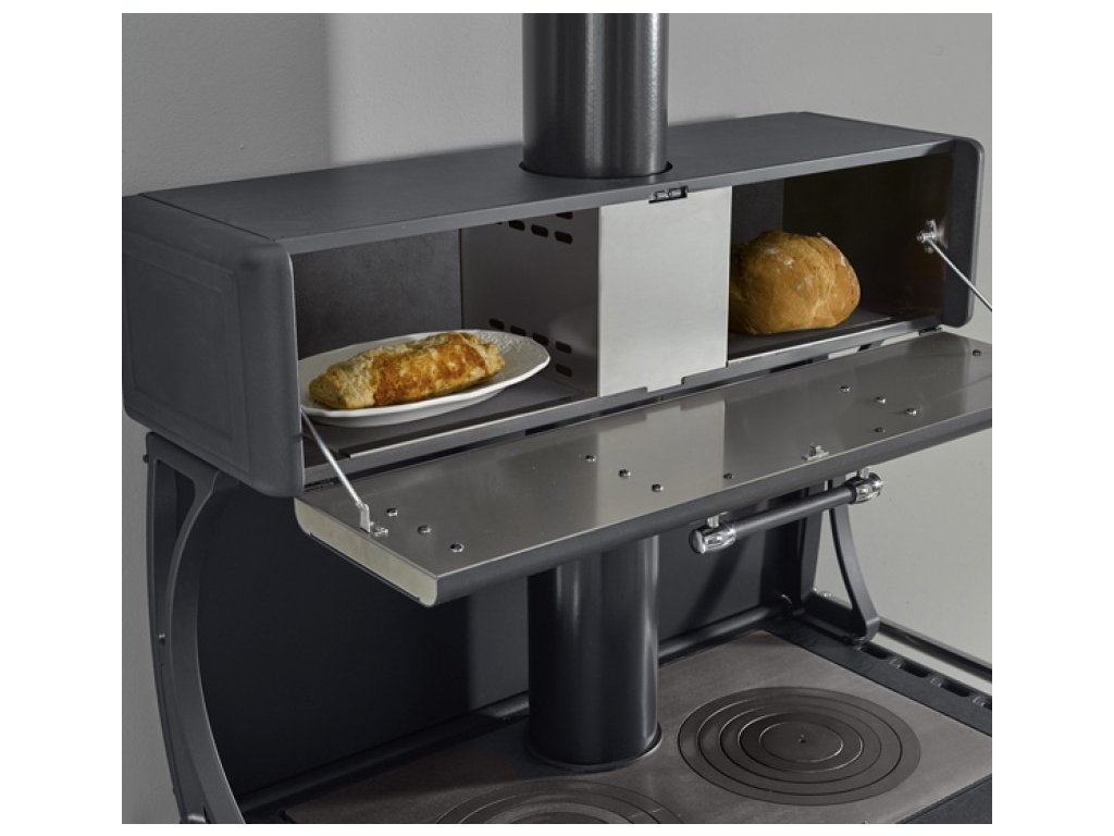 Ku sporáku je možné dokúpiť nadstavbu nad platňu, pre ešte väčšie využitie tepla pri vykurovaní. Priehradka je vyložená masívnymi prírodnými kameňmi pre akumuláciu tepla. Môže tak slúžiť na ohrev pokrmov, sušenie, dopekanie alebo predhrievanie tanierov.
