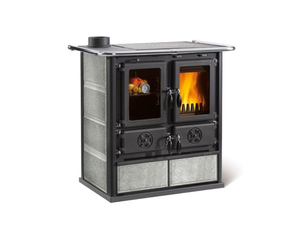 Kvalitný liatinový sporák na kúrenie drevom a drevenými briketami s preskleným ohniskom a kachľovým obkladom. Veľmi populárny sporák nielen na chaty a chalupy. Je možné ho využívať na vykurovanie, ale aj pečenie v smaltovanej rúre a varenie na veľkej liatinovej platni. Je to produkt 3 v 1.