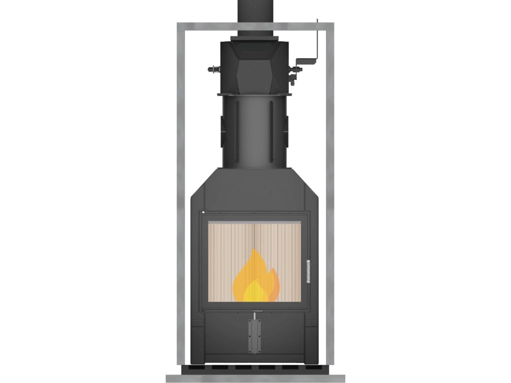 - vývod spalín Ø180 mm s integrovanou,škrtiacou klapkou, betónový plášť s oceľovým,podstavcom.