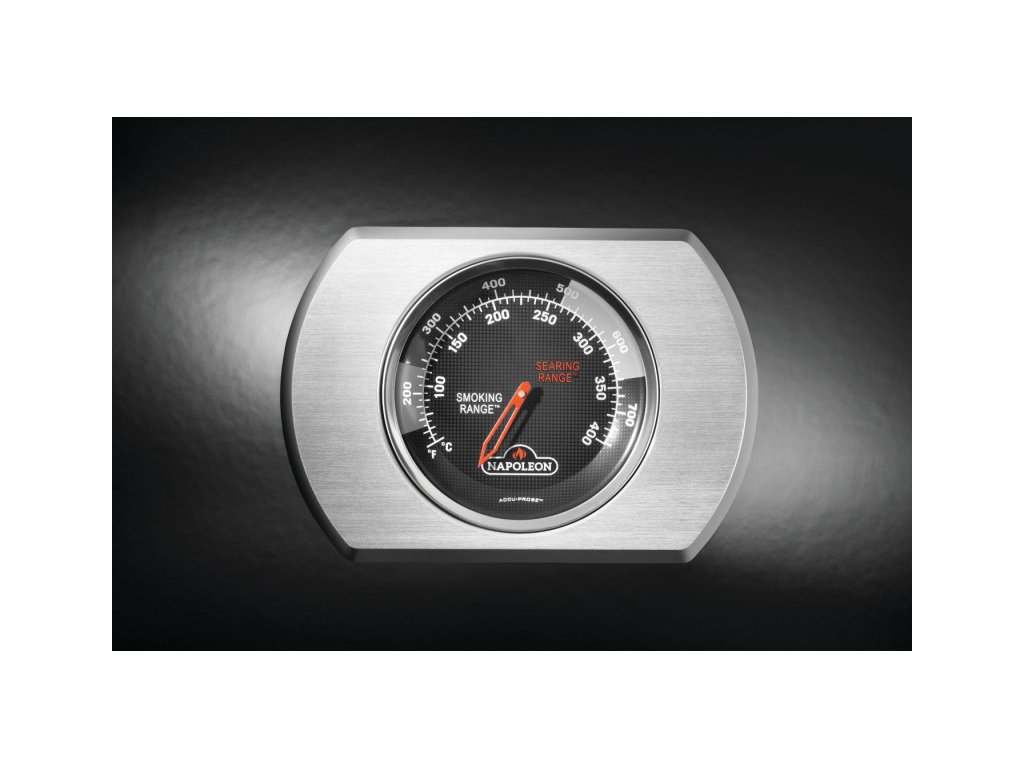 - Vo veku grilu je zabudovaný teplomer, pomocou ktorého ľahko ustrážite ideálnu teplotu toho, čo práve grilujete.