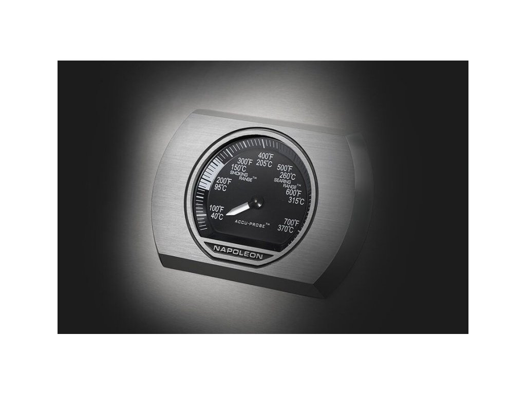 - Vo veku grilu je zabudovaný teplomer, pomocou ktorého ľahko ustrážite ideálnu teplotu toho, čo práve grilujete.