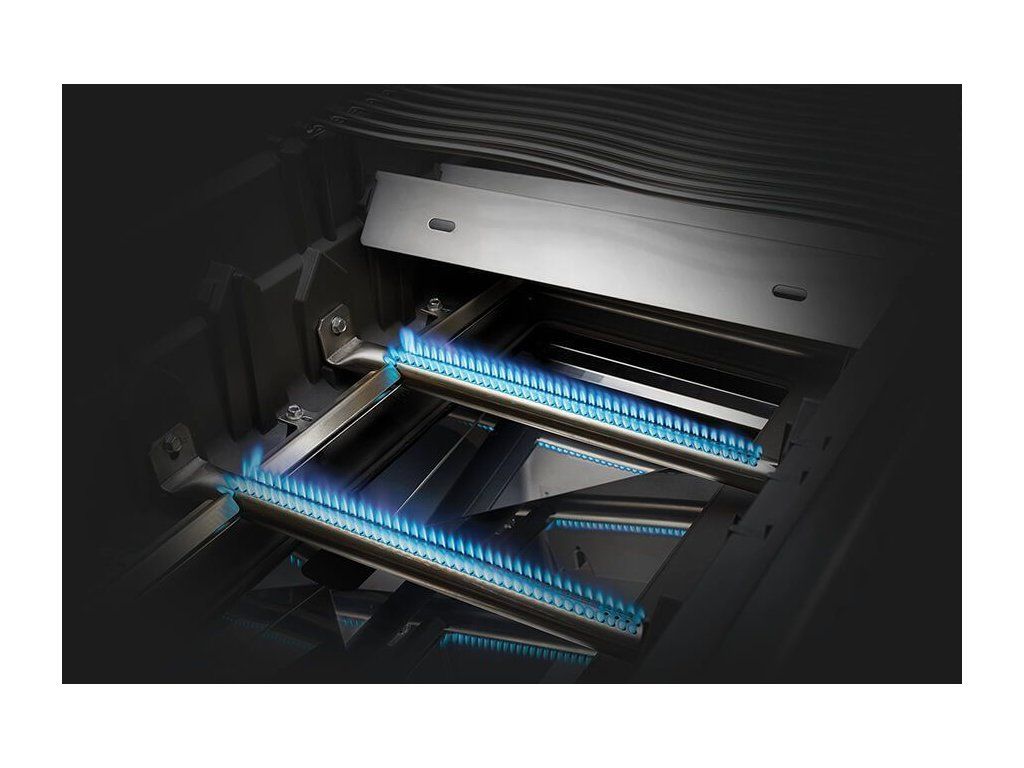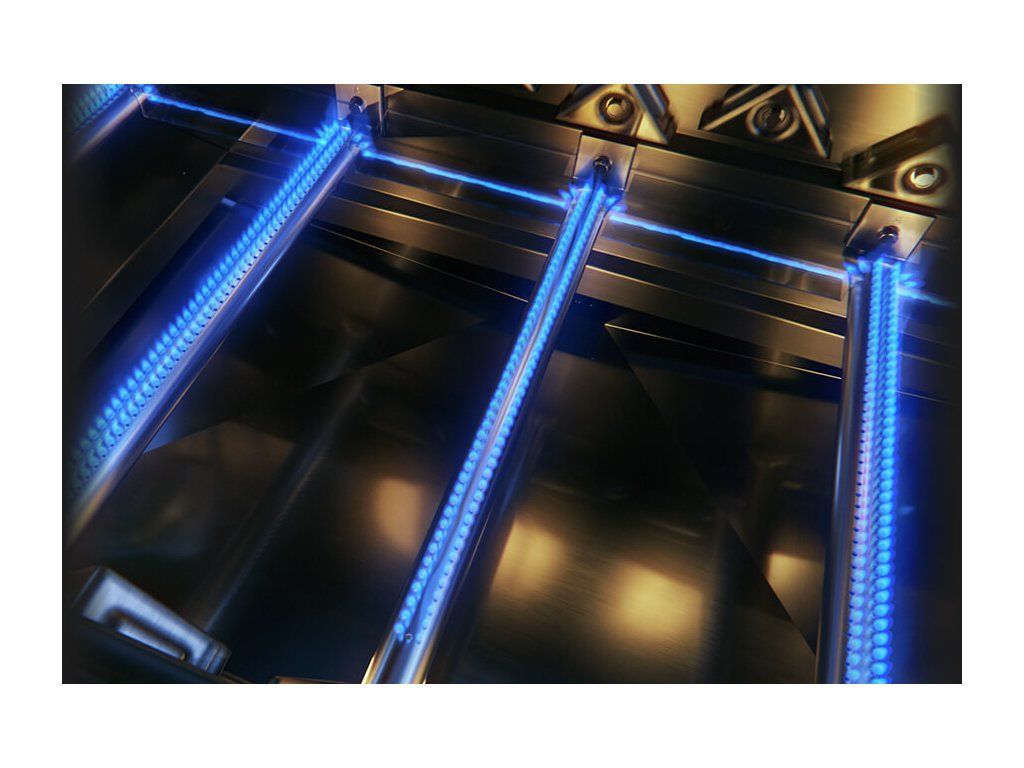Gril má celkom 4+2 horáky. Štyri hlavné nerezové so špeciálnymi krytmi, aby sa do trysiek horákov nedostalo nič, čo tam nepatrí. Tie sú navyše vybavené systémom vzájomného zapaľovania, takže keď náhodou pri zapaľovaní nechytia všetky, zapália sa navzájom od seba. Gril ďalej disponuje zadným horákom pre ražeň a jedným bočným infračerveným (tzv. Sizzle Zone).