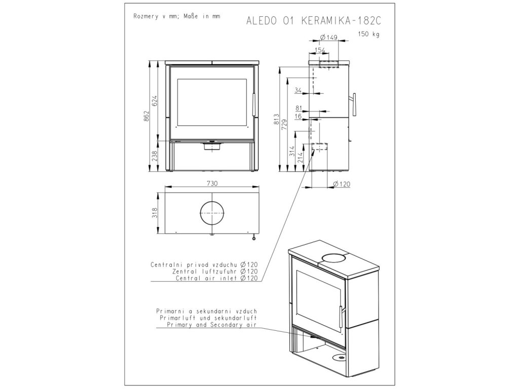 - Priemer dymového hrdla: 150 mm