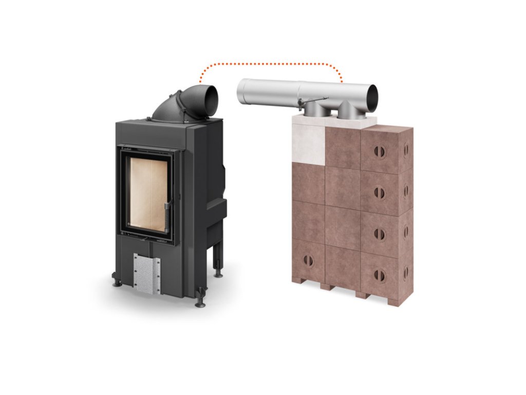 Základom systému sú špeciálne akumulačné tvarovky s výnimočnou tepelnou vodivosťou a vysokou objemovou hmotnosťou 2750kg/m³. Tieto moduly sa inštalujú medzi pecovú vložku a komín, kde rýchlo absorbujú teplo zo spalín a následne ho postupne odovzdávajú do priestoru. Možnosť montáže po pravej alebo ľavej strane ohniska poskytuje vysokú mieru flexibility pri návrhu a realizácii stavby. Celková hmotnosť systému dosahuje približne 330kg, dĺžka spalinovej cesty je 4m a odporúčaná minimálna teplozmenná plocha vykurovacieho telesa je 5m². Tento systém je ideálnou voľbou pre individuálne riešené akumulačné stavby, kde je kladený dôraz na stabilný výkon, komfortné sálavé teplo a premyslenú integráciu do interiéru.
