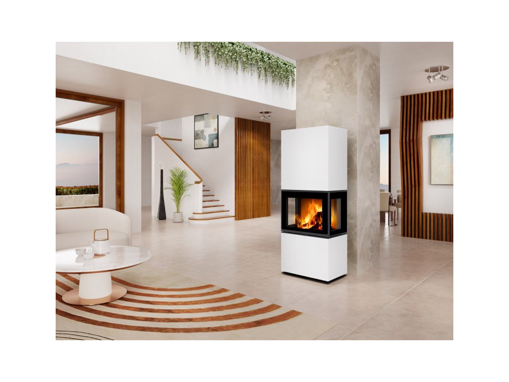 Dvojité bočné sklá i vnútorný priestor spaľovacej komory vyložený šamotovými tvarovkami, prispievajú k optimálnemu priebehu horenia. Dizajnové krby sú vhodné aj pre nízkoenergetické domy. Na prikladanie slúžia čelné dvierka s otváraním do strany, elegantná integrovaná kľučka je čiastočne zapustená, aby nenarušovala čistú a jednoduchú líniu v celku.