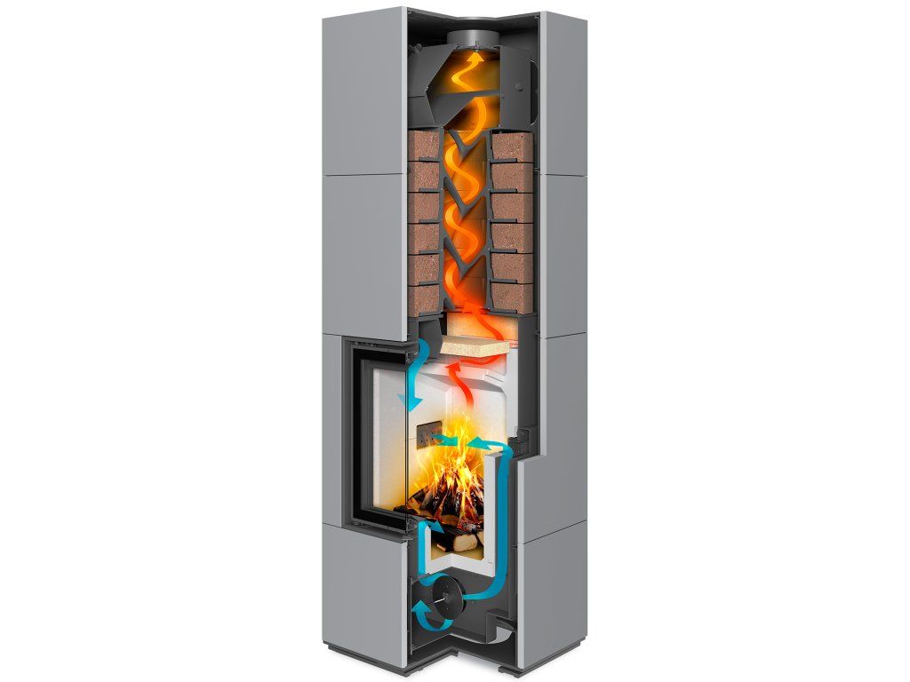 - Komfort však prichádza rýchlo – priestor sa najskôr ohrieva sálaním cez veľké sklo dvierok, a následne sa pridáva teplo akumulačnej hmoty i celého plášťa kachlí.