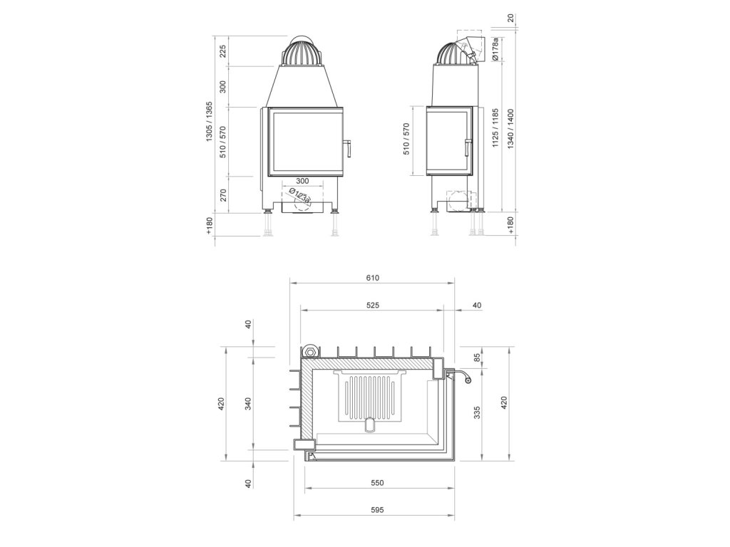 - jadro podľa voľby: šamot Anthrazit alebo Premium biele