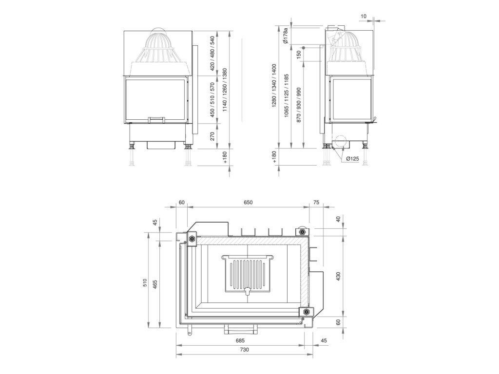 - jadro podľa voľby: šamot Anthrazit alebo Premium biele