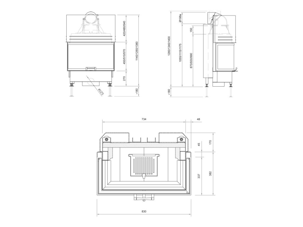 - jadro podľa voľby: šamot Anthrazit alebo Premium biele