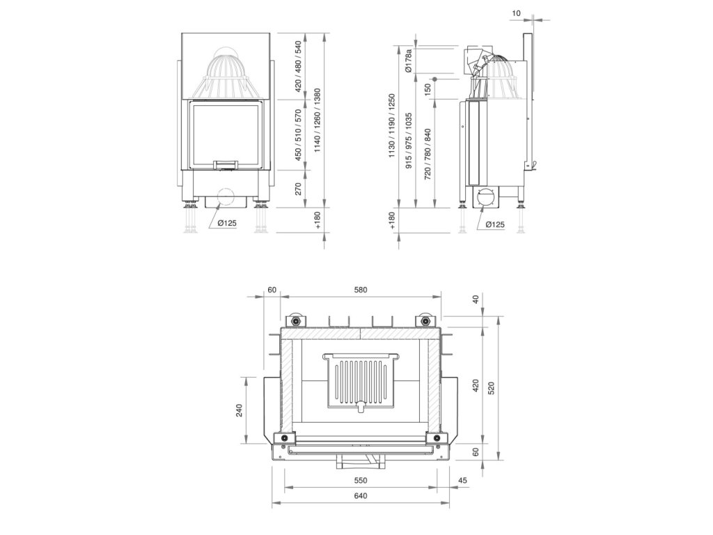 - komínové napojenie Ø 180 mm / min. 4m
