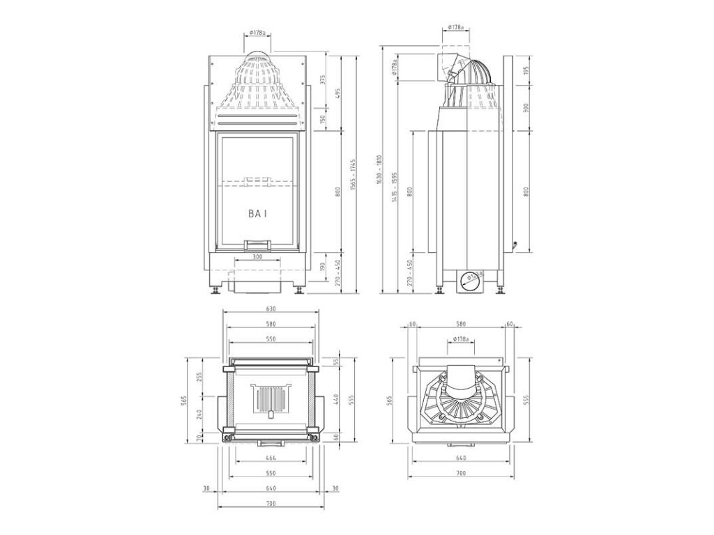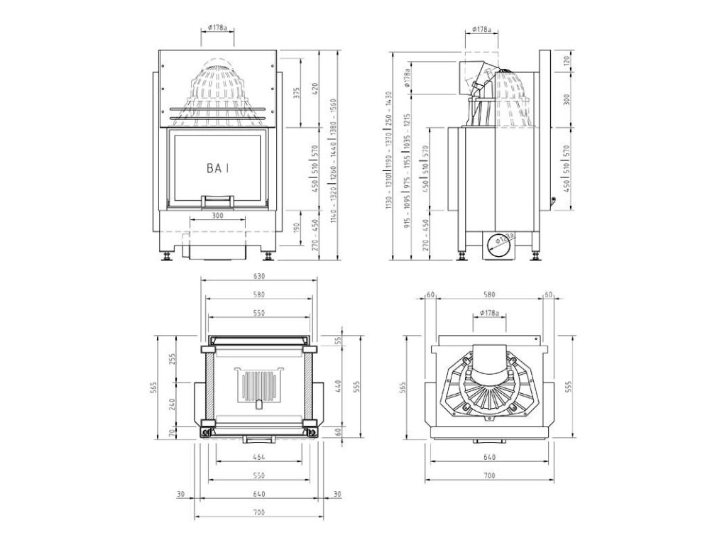 SCHMID - Teplovzdušná krbová vložka - LINA TV 55 h, tunel - 7 kW