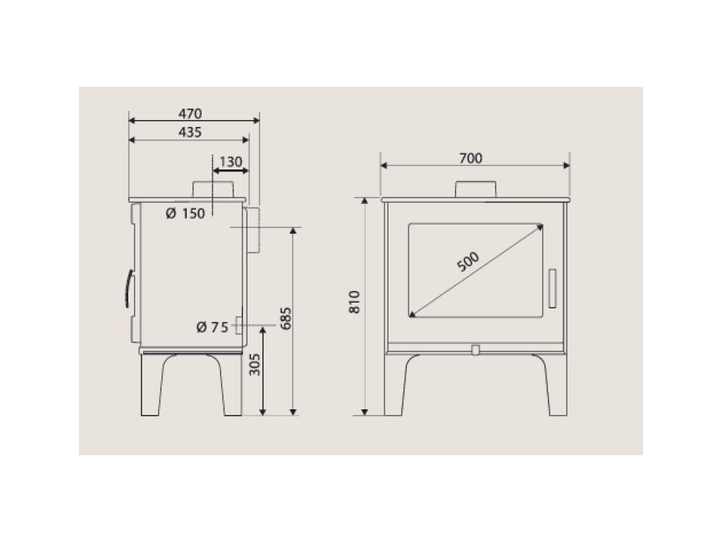 - komínové napojenie 150 mm horné, alebo zadné