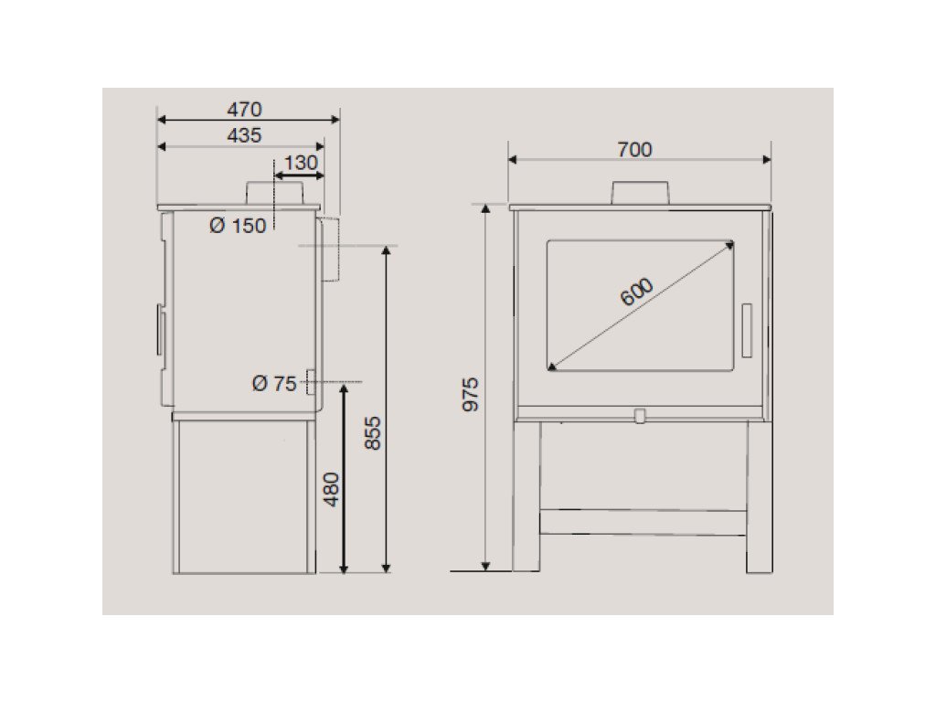 - komínové napojenie 150 mm horné, alebo zadné