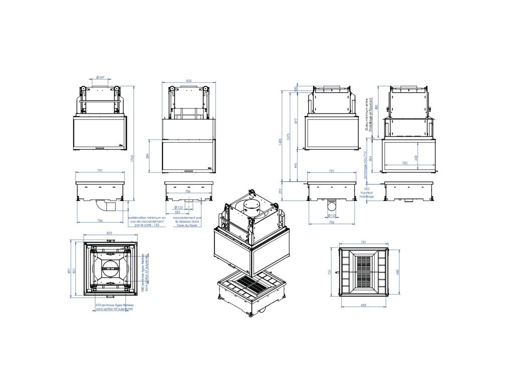 Totem - designová teplovzdušná krbová vložka - 4-Faces 800 technika - 13 kW