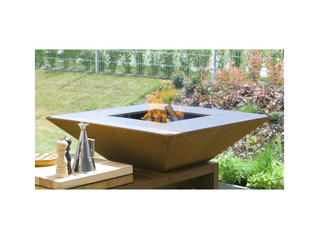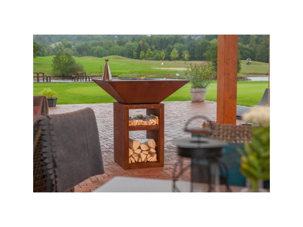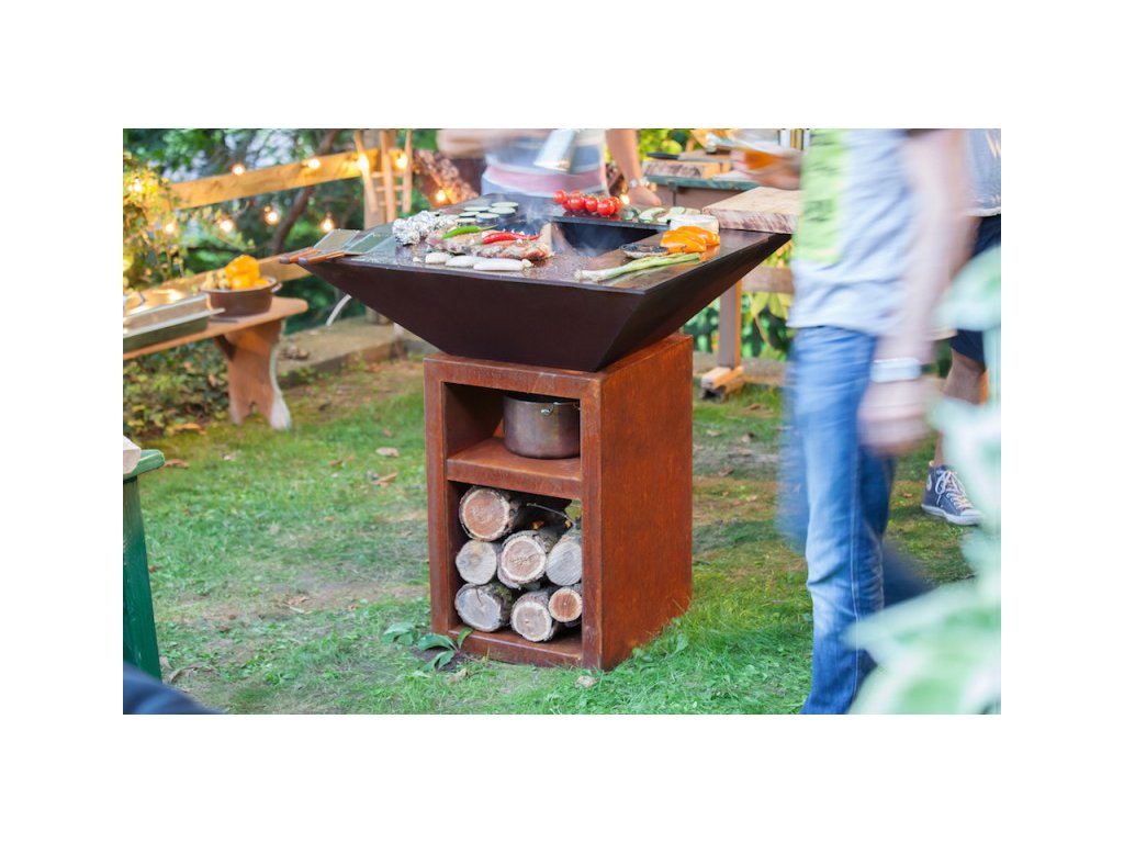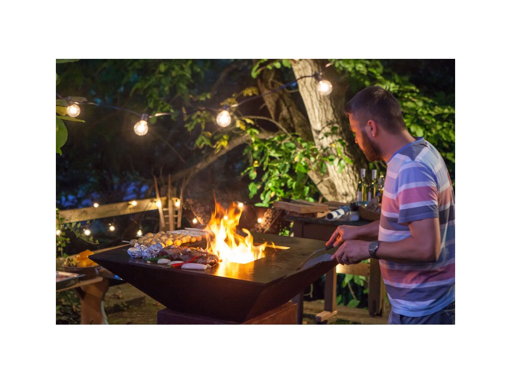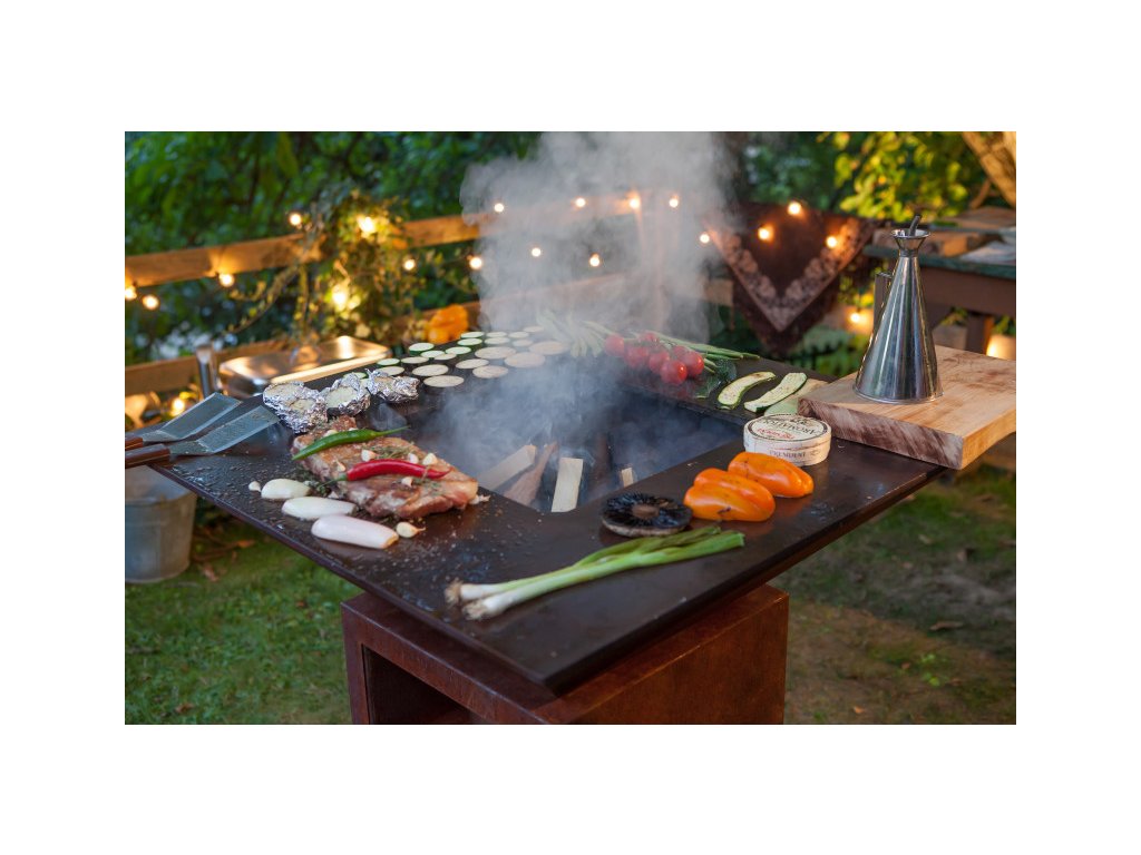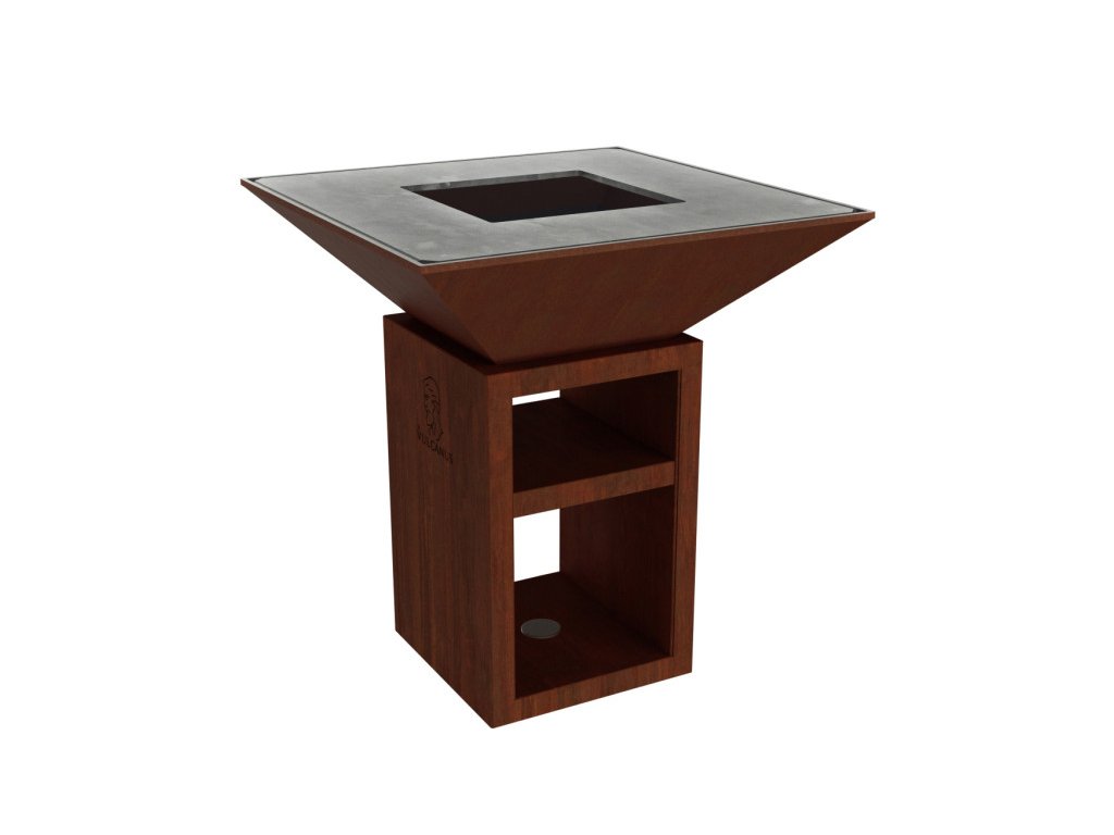 Grily Vulcanus majú jedinečný dizajn chránený patentom. Telo grilov vyrábame z patinujúcej ocele COR-TEN, ktorá má dlhú životnosť. Je navyše vyložené akumulačnou vložkou pre lepšiu cirkuláciu horúceho vzduchu, tepelnú stabilitu a zníženú spotrebu dreva. Vďaka štvorcovému tvaru má gril až o ⅓ väčšiu grilovaciu plochu než klasické kruhové grily. Dve tepelné zóny vám navyše umožnia súčasne ugrilovať mäso aj ohriať syry alebo zeleninu. Vysoký podstavec so zásobníkom na drevo je ako stvorený pre pohodové grilovanie postojačky. Navyše si do jeho priehradky môžete odkladať riady a ďalšie veci, ktoré chcete mať poruke.