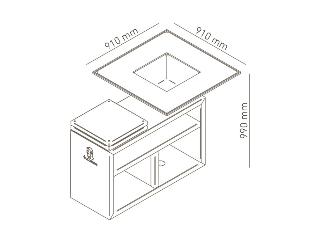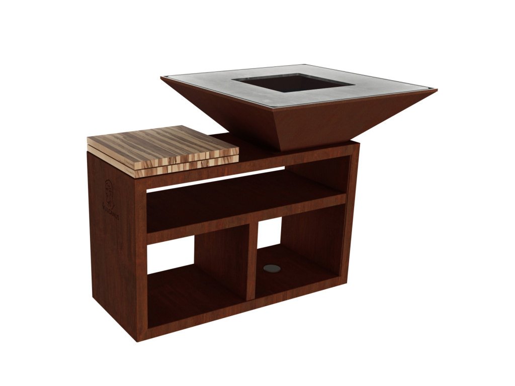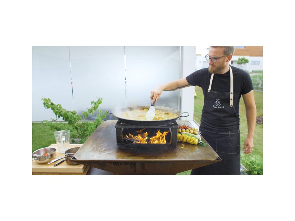 Grily Vulcanus majú luxusný patentovaný dizajn. Ich telo je vyrobené z patinujúcej ocele COR-TEN a vybavené akumulačnou vložkou. Tá zaisťuje lepšiu cirkuláciu horúceho vzduchu vo vnútri grilu. Zaručuje tiež tepelnú stabilitu a zníženie spotreby dreva pri grilovaní. Štvorcový tvar platne má oproti klasickým okrúhlym grilom až o ⅓ väčšiu plochu. Samotná platňa je rozdelená na dve tepelné zóny. Môžete tak zároveň grilovať aj ohrievať napríklad syry alebo zeleninu. Vysoký a špeciálne predĺžený podstavec ponúka väčší zásobník dreva, miesto na odloženie riadov aj profesionálny mäsiarsky klát. Pripravujte a servírujte pokrmy pohodlne priamo v blízkosti grilu.